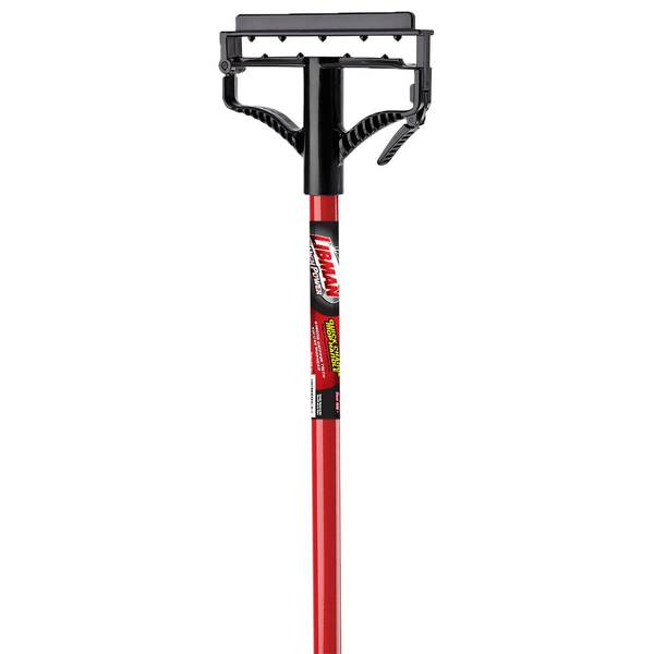 Commercial mop handle for the Libman wet mop refills. Quick-Change Mop Handle has a hinged head that opens completely to remove and add mop heads.