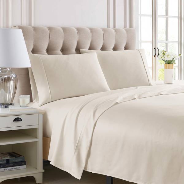 Your Everyday all cotton sheet set in ivory color to match any bedroom. 300 Thread Count makes the fabric lightweight and the single pic construction makes the fabric smooth. 100% Cotton fabrics are soft, breathable, comfortable and wash well. Available in Full/Queen/King.